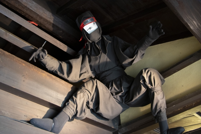 映画やドラマでは「忍者は黒装束」がお決まりですが、史実の研究においては、真っ黒な衣装は月明かりのある夜間ではかえって輪郭が浮き出て目立ってしまうとされています。