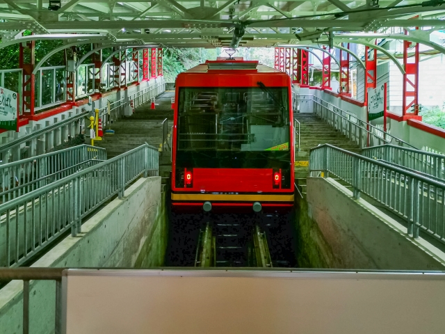 このケーブルカーは、単なる移動手段というだけでなく、急勾配を登る迫力と窓から見える雄大な景色の両方を楽しめる、旅の序盤のハイライトと言えますね。