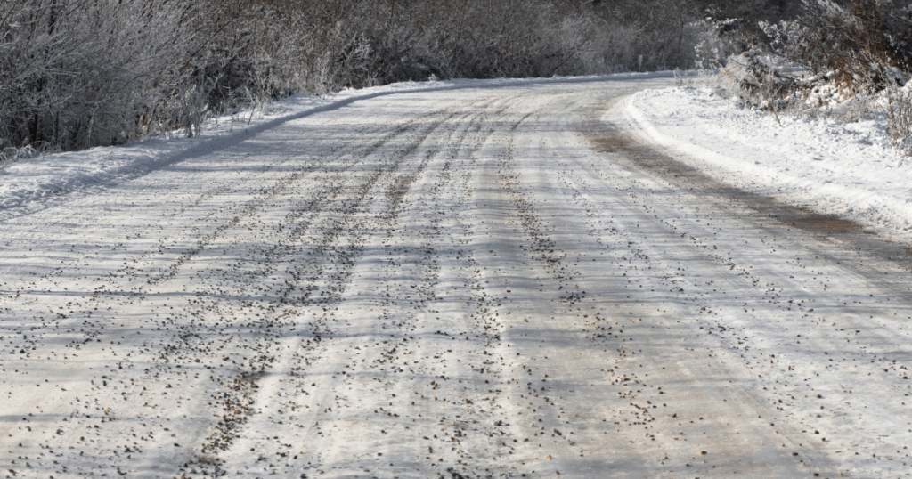 これは「ブラックアイスバーン」と呼ばれ、路面が濡れているだけのように見えて非常に滑りやすいため、大変危険です。
