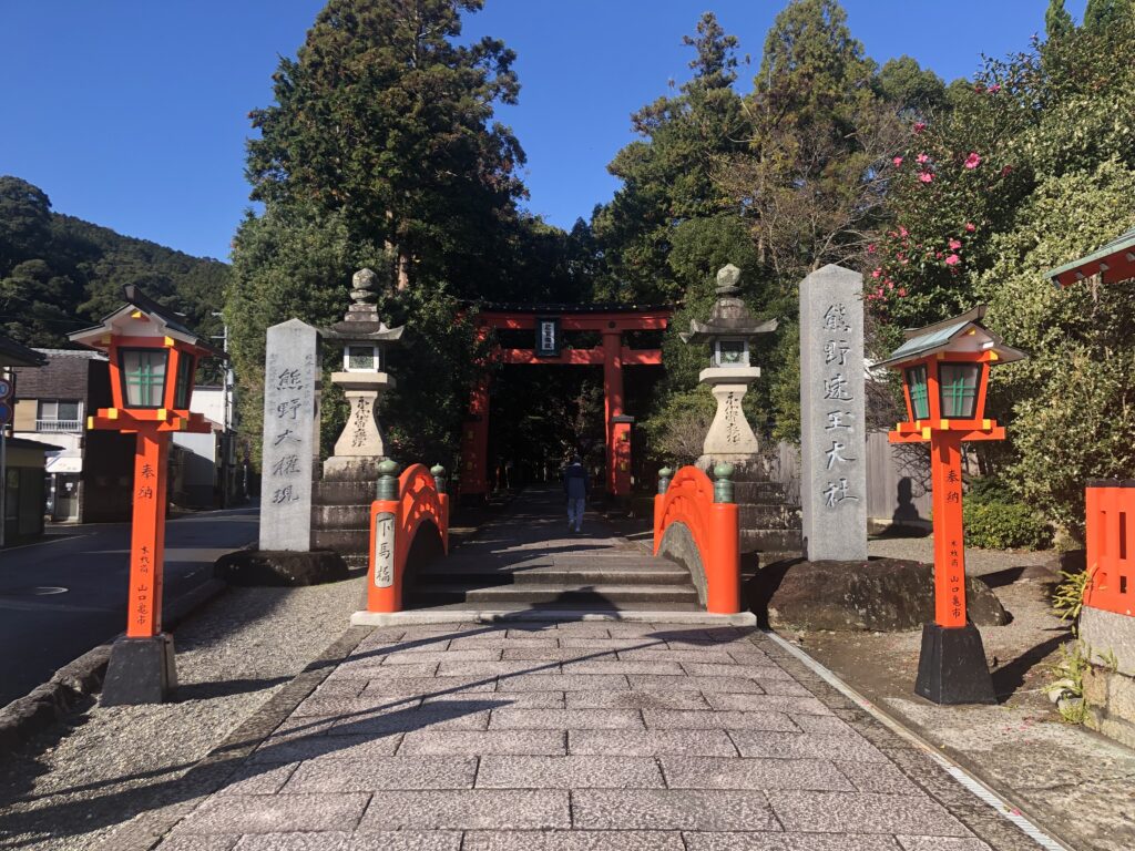熊野速玉大社への参拝は、駐車場から直接、神門前の広場へ向かうルートが最短です。