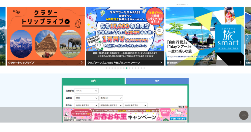 • 会員限定割引:特定のパッケージツアーが数%割引になる優待もあり。