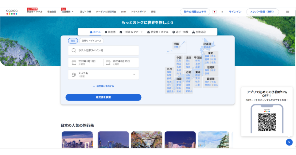 格安ホテル予約なら断然Agoda